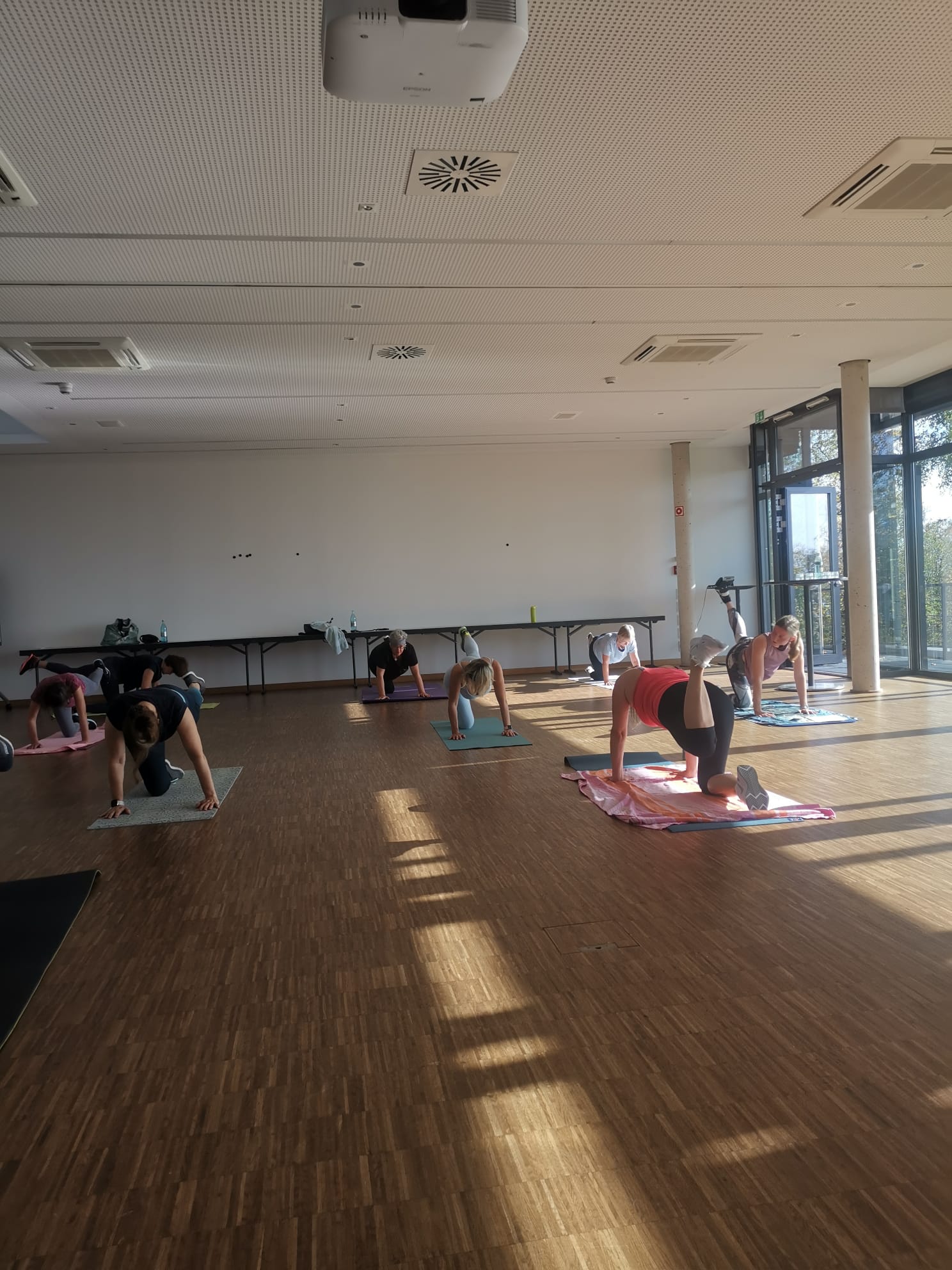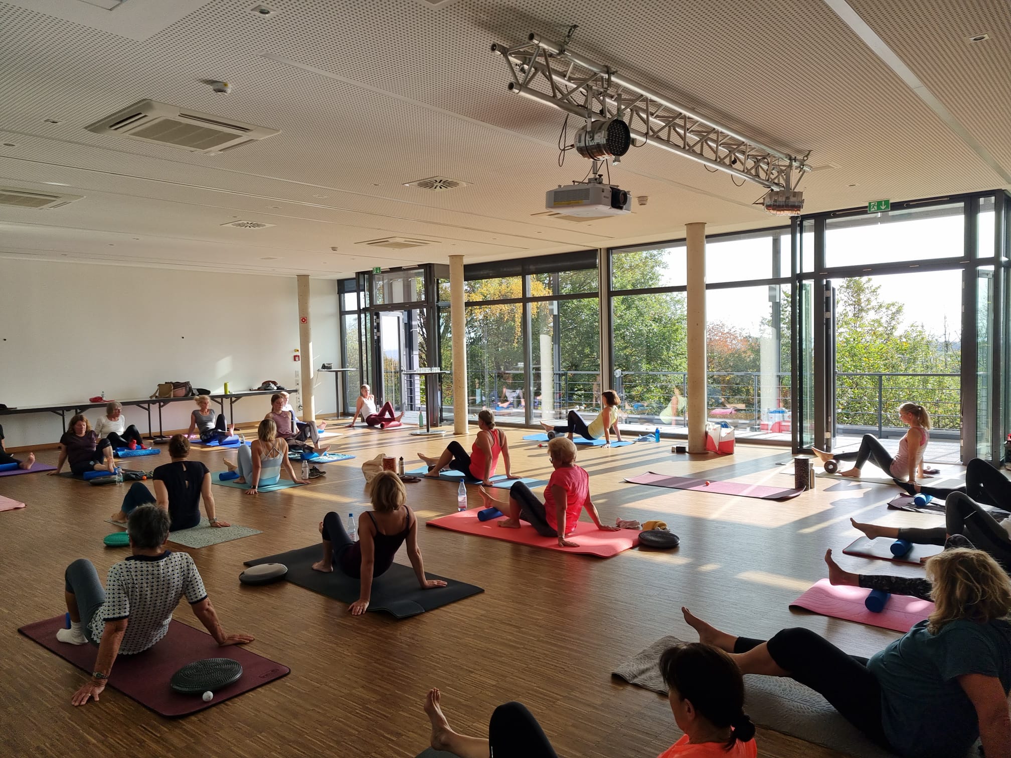 Vom 28.10.2022 bis zum 30.10.2022 fand nach zwei Jahren coronabedingter Pause wieder das beliebte Ladies-Fitnesswochenende im Seminarzentrum Rückersbach im Spessart statt. Unsere Trainerinnen Andrea, Anna, Claudia, Julia, Kristin und Monja hatten ein abwechslungsreiches Programm gestaltet, in dem sich unsere motivierten Teilnehmerinnen drei Tage lang beispielsweise beim Yoga, Aerobic, Pilates oder Zumba auspowern konnten oder beim Nordic Walking den angrenzenden Wald erkundeten. Wer zwischendrin wieder etwas Ruhe benötigte, fand ebenfalls Kurse wie Waldbaden oder „Breathwork“ oder hatte Spaß bei einer Partie Boccia. Bei einem leckeren Abendessen und einem bunten Quiz am Samstagabend, das von den Trainerinnen organisiert worden war, wurde viel gelacht und auch getanzt. Den Abschluss des Wochenendes bildete ein gemeinsamer Kurs für die Faszien sowie zur Entspannung und Dehnung des ganzen Körpers.