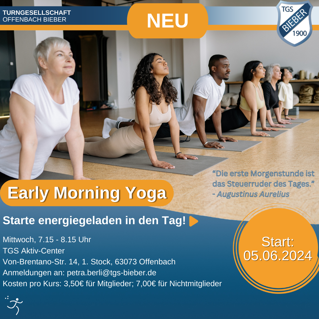 Yoga am Morgen ist erfrischend, belebend und ideal, um Körper und Geist auf den bevorstehenden Tag auszurichten. Wir praktizieren eine Mischung aus Pranayama (Atemübungen), aktivierenden und stärkenden Asanas und Meditation. Wenn du Lust hast, morgens energiegeladen in den Tag zu starten, melde dich gleich an!