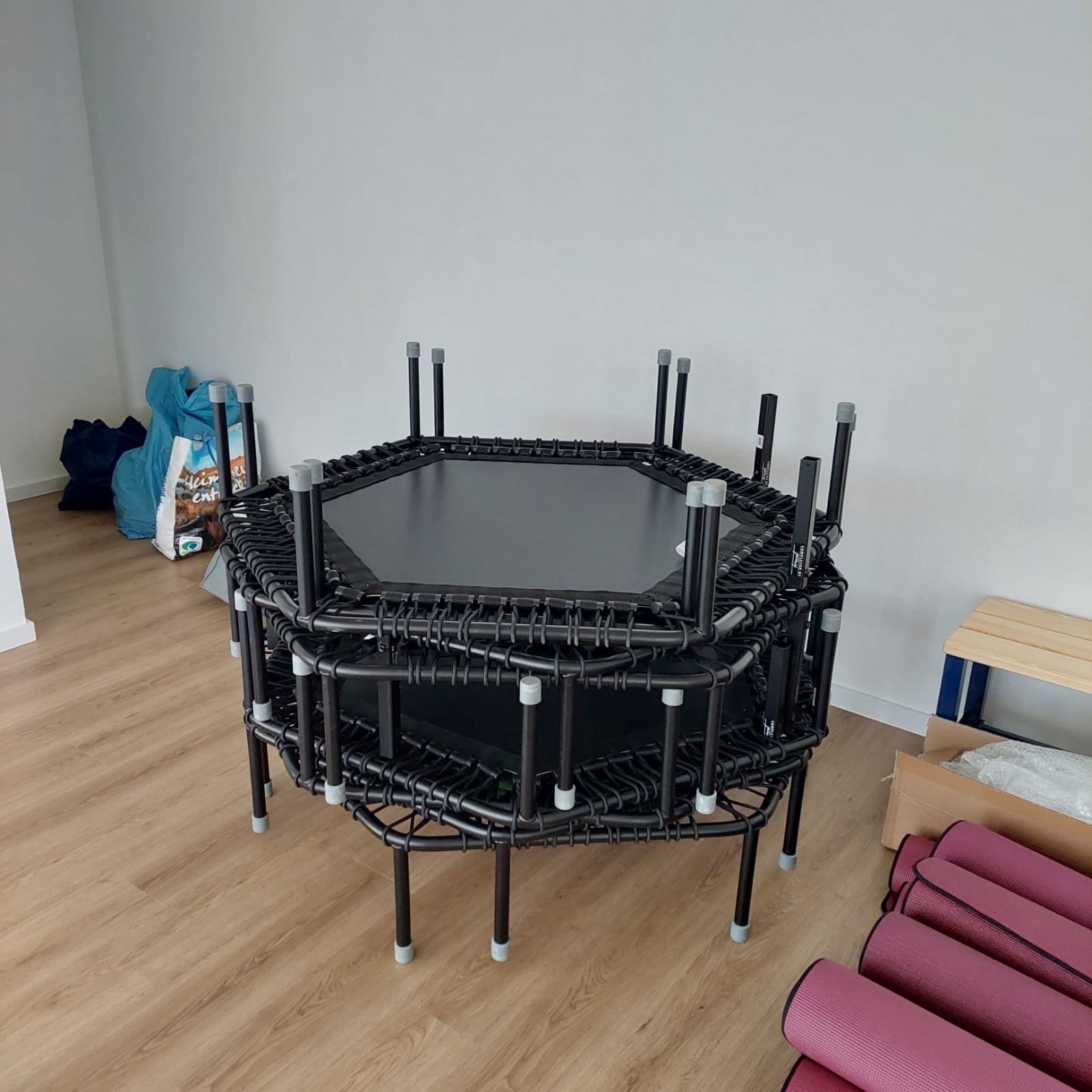 In diesen Tagen finden unsere letzten Kurse in der Locomotion statt, denn nach den Ferien können wir unsere Yoga-, Pilates- und Jumping-Kurse endlich in unseren eigenen Räumlichkeiten in Bieber West anbieten. Dafür brauchte es in den letzten Tagen viel Vorbereitung und einige fleißige Helfer, die unsere gesamten Fitnessgeräte und Utensilien ins Aktiv-Center transportierten. Neben den kleineren Geräten zogen am Samstag dann mithilfe eines Anhängers schließlich auch die Trampoline um und wurden vor Ort aufgebaut. Bereits einen Tag später konnte schon unser erster Jumping-Kurs im neuen Raum stattfinden. Damit ist das Aktiv-Center nun als neuer Kursraum eingeweiht!