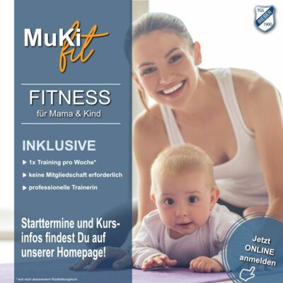 Unser MuKi Fit Kurs richtet sich an Neu-Mamas, die ihr Baby mitnehmen wollen. Der Kurs startet am 12.09.2024 und findet dann jeden Donnerstag Vormittag im TGS Aktiv Center statt. Die Kursdauer beträgt ebenfalls 12 Termine.
