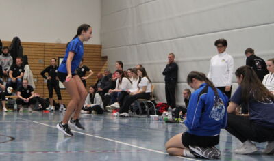 Der Wettkampftag begann bereits sehr früh um 8 Uhr mit der Hallenöffnung. Leider konnten nicht alle Zuschauer einen freien Tribünenplatz ergattern, da bei einem sehr großen Teilnehmerfeld von 150 Springerinnen und Springern entsprechend viele Betreuer, Eltern und Freunde mitgereist sind. Der Wettkampf begann wie immer mit dem Einlauf der Vereine und einer Ansprache durch unsere Vereinsvorsitzende Eva Fuchs, die begrüßende Worte an alle Anwesenden richtete.