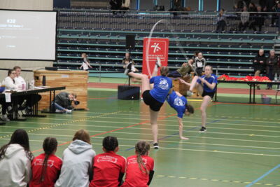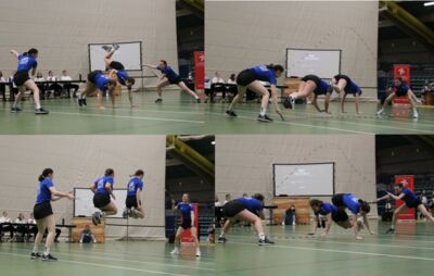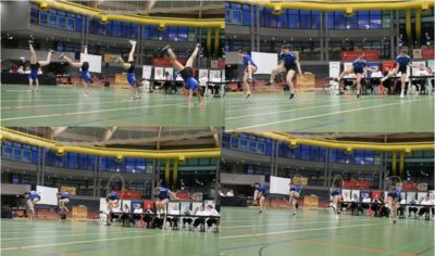 Auch in diesem Jahr wurden am Morgen erst die Meisterschaften eines anderen Turnverbands ausgetragen, sodass der Wettkampf erst gegen 12 Uhr startete. Wie immer ging es mit den vier verschiedenen Speed Disziplinen los. Hierbei zeigten Julia und Finja im Single Rope Double Under Relay eine super Leistung mit 150 Zählern in 60 Sekunden. Ailina, Anna-Lena und Jessica freuen sich beim Double Dutch Speed Sprint über einen neuen Rekord mit 145 Zählern, ebenfalls in 60 Sekunden.