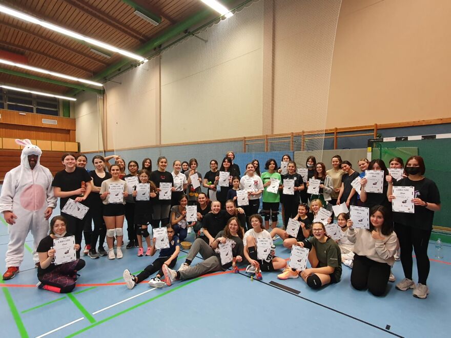 Durch die tolle Teamdynamik war es möglich mit über 40 Mädchen in 2h ein komplettes Turnier zu spielen.  Klasse Ballwechsel, toller Einsatz und jede Menge Spaß füllten die Halle der Mathildenschule am heutigen Montagabend und am Ende kam es zu folgenden Platzierungen: